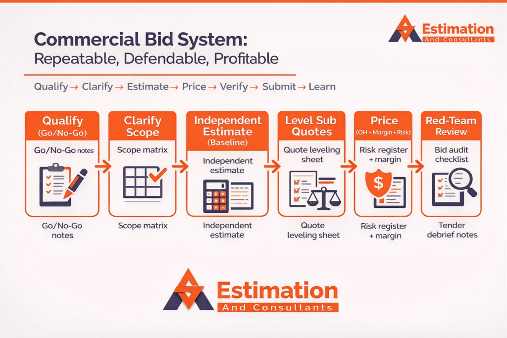 Commercial bids are rarely lost on one big mistake. They’re usually lost on small things that stack up fast—unclear scope, rushed takeoffs, weak subcontractor checks, or pricing risk that was never written down. When that happens, you either lose the tender or win a job that hurts your margin. This guide shows a simple, repeatable […]