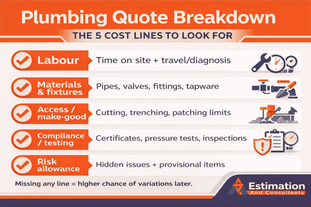 Plumbing quote breakdown (MECE) — how a proper estimate is built