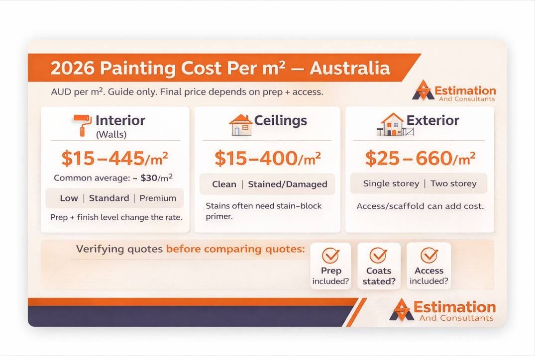Painting Cost Per m² in Australia (2026 Guide: Interior, Exterior, Ceilings)
